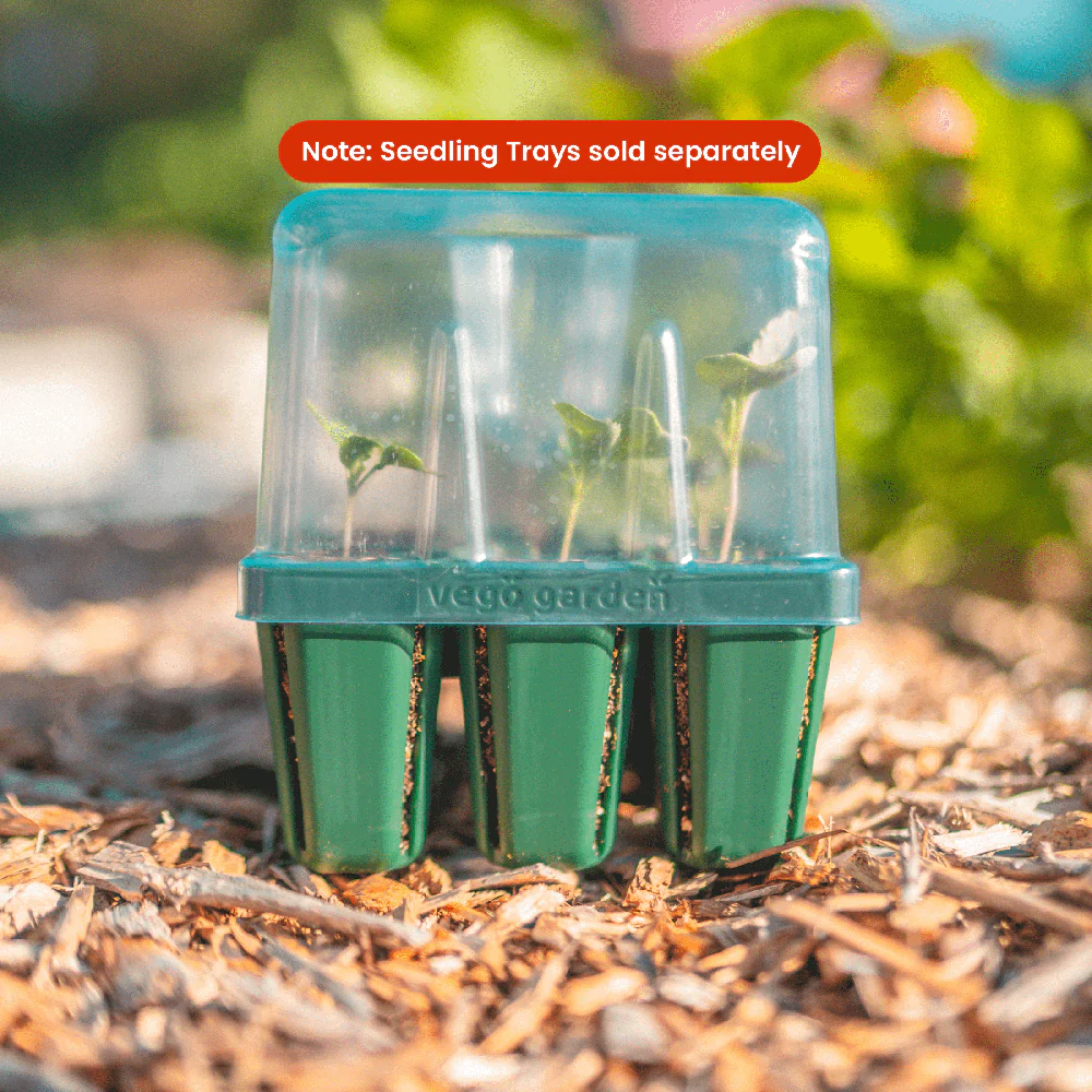 With an innovative drip watering chamber, Vego's Seedling Tray Lids ensure your seeds stay moist and hydrated without being disturbed; plus, you can refill the drip-irrigation chamber without lifting the lid, so that your delicate seeds remain undisturbed. The dome traps humidity in the tray, keeping your seeds moist until they sprout!Â